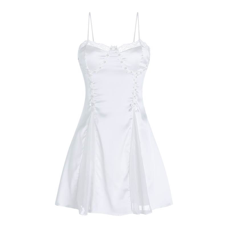 Hollow Out Lace Satin Slip Nightdress