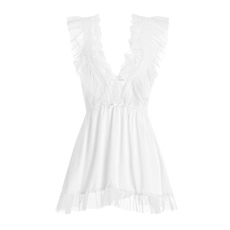 Lace Ruffle V-Neck Lingerie Nightdress Slip Dress
