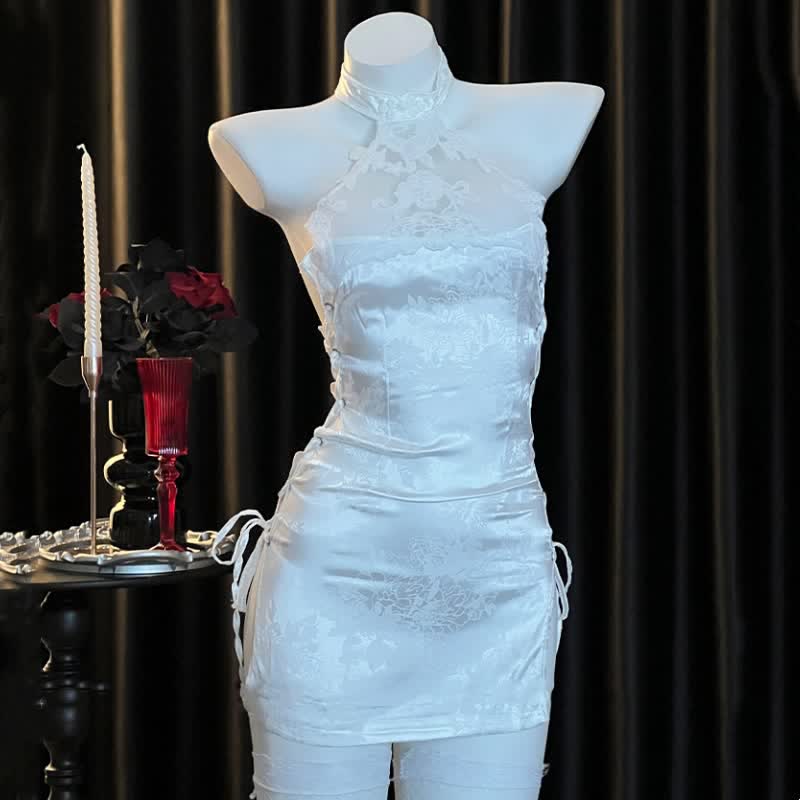 Vintage Embroidery Lace Up Hollow Out Cheongsam Lingerie Dress