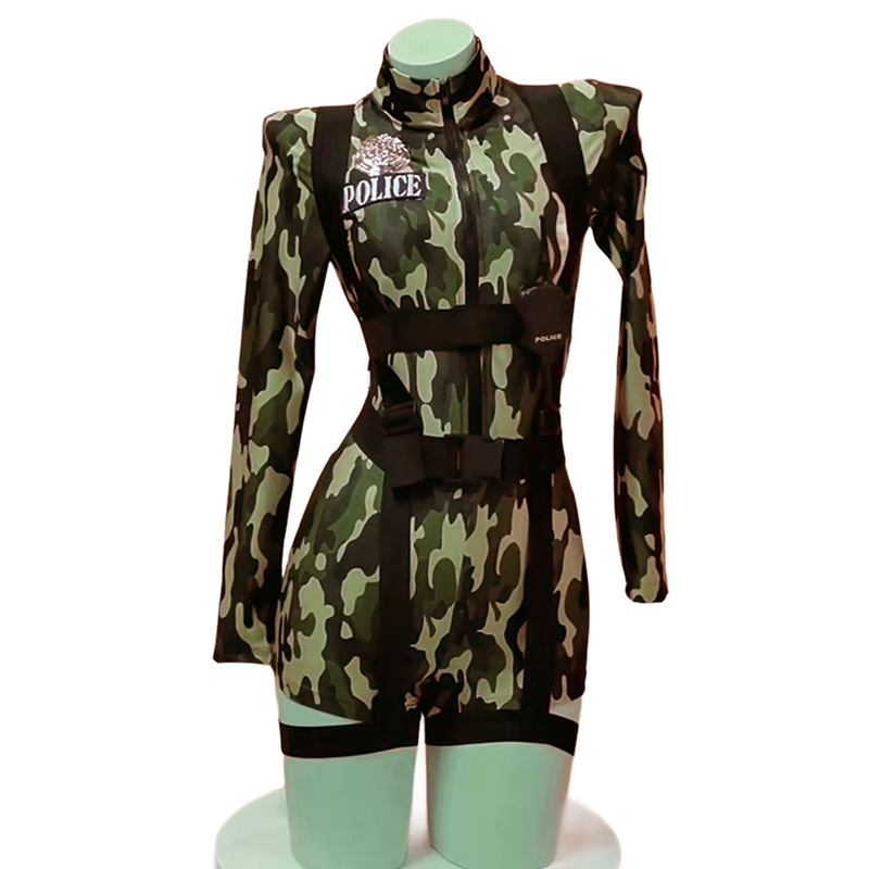 Cosplay Policewoman Uniform See-through Jumpsuit Lingerie