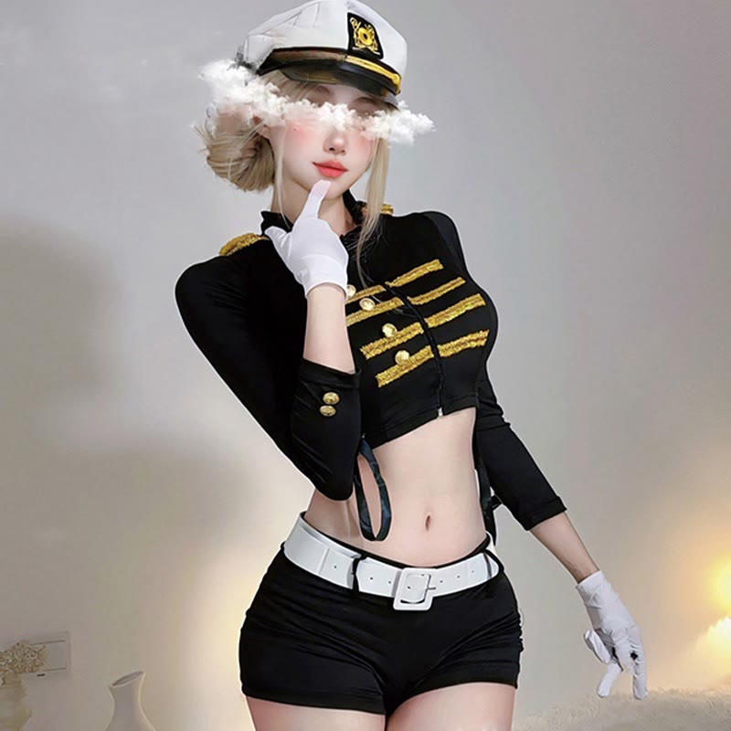 Cosplay Constable Uniform Backless Lingerie Slip Dress