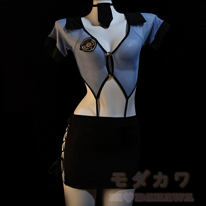 Cosplay Policewoman Uniform Hollow Out Lingerie Set