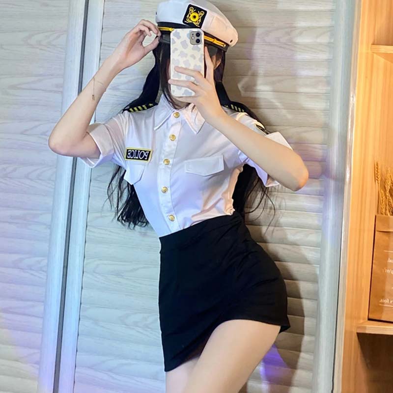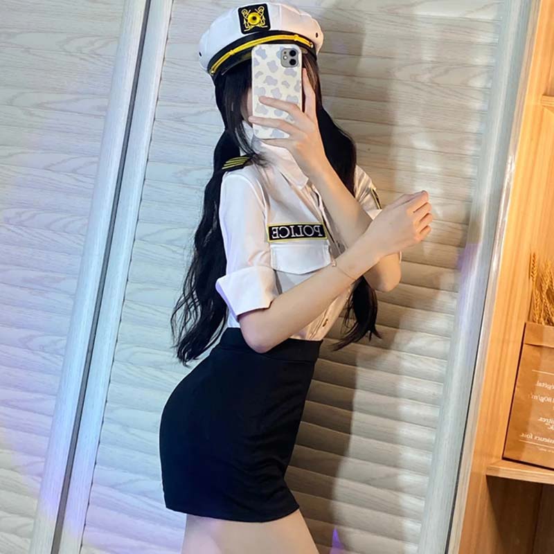 Cosplay Policewoman White Stockings Uniform Lingerie Set