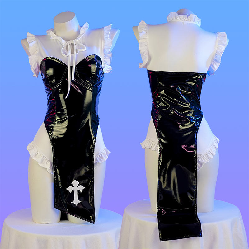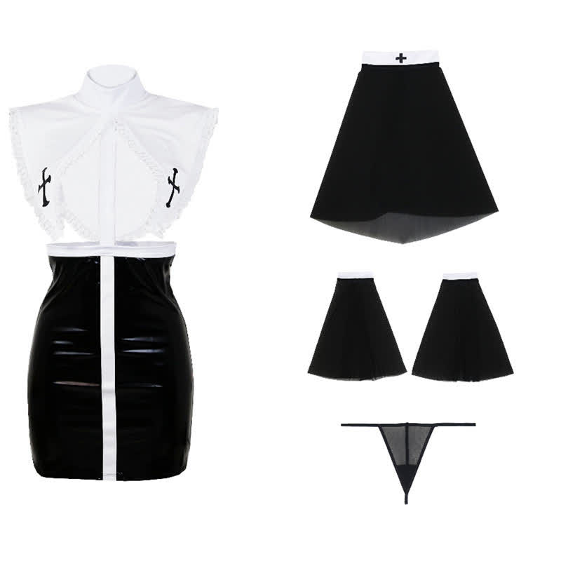 Nun Cosplay Colorblock PU Dress Lingerie Set