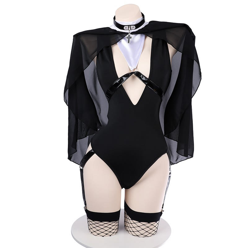 Nun Cross Hollow Out Jumpsuit Lingerie Set