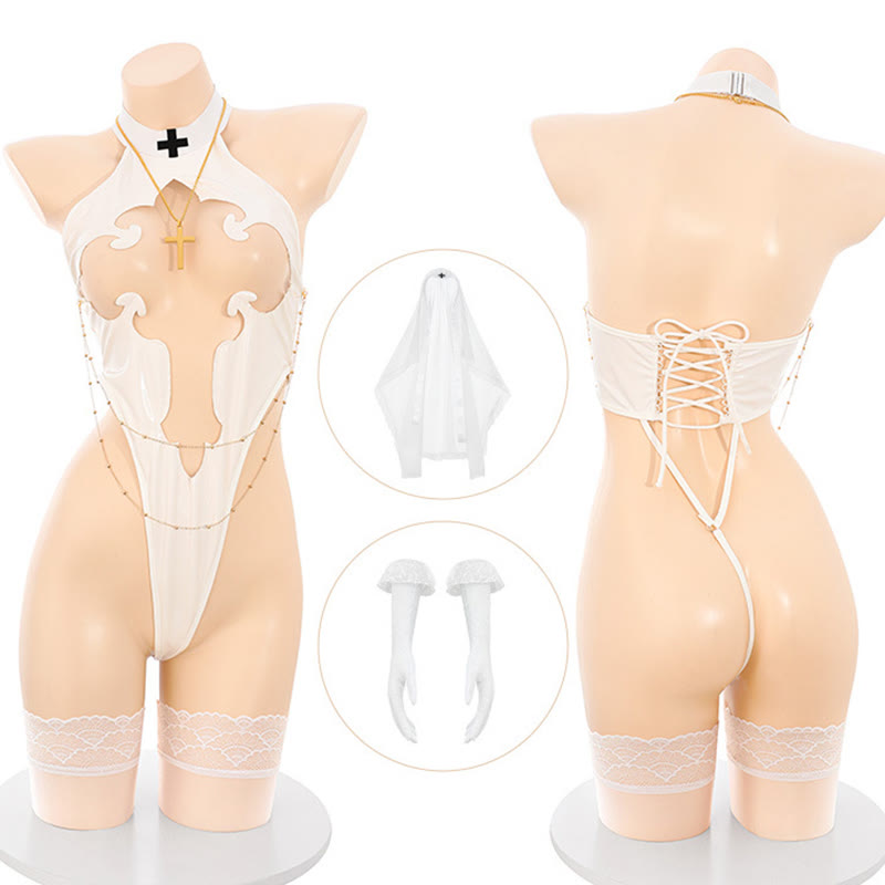 Nun Cross Hollow Out Backless Lingerie Dress