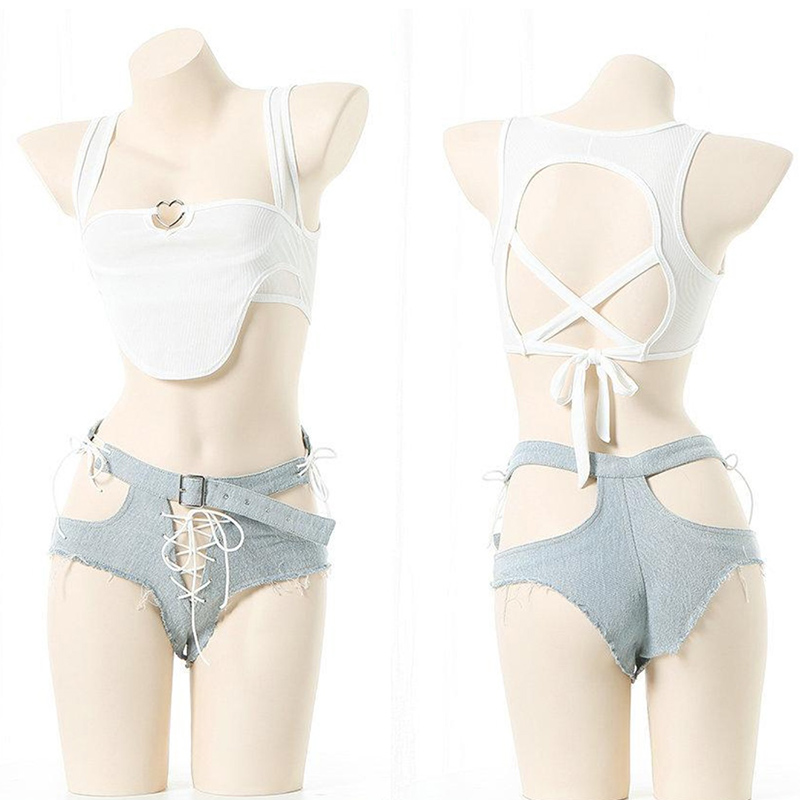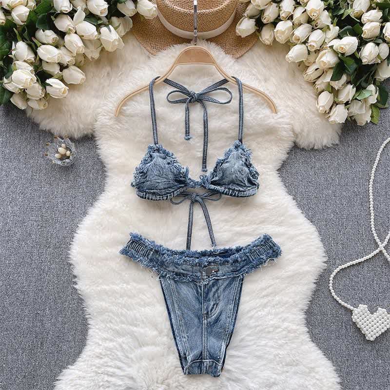 Sexy Lace-up Denim Bikini Lingerie Two Pieces
