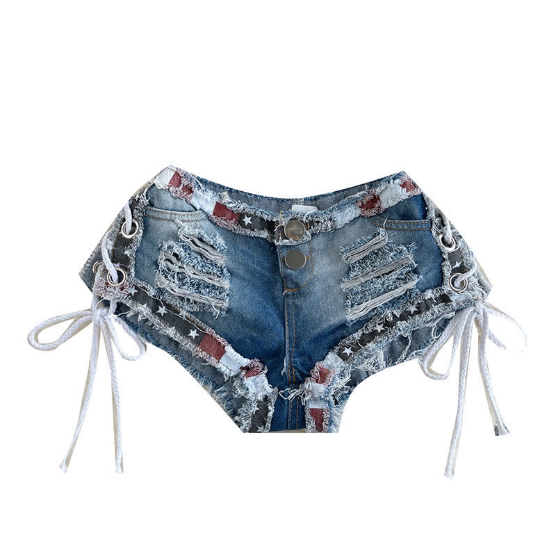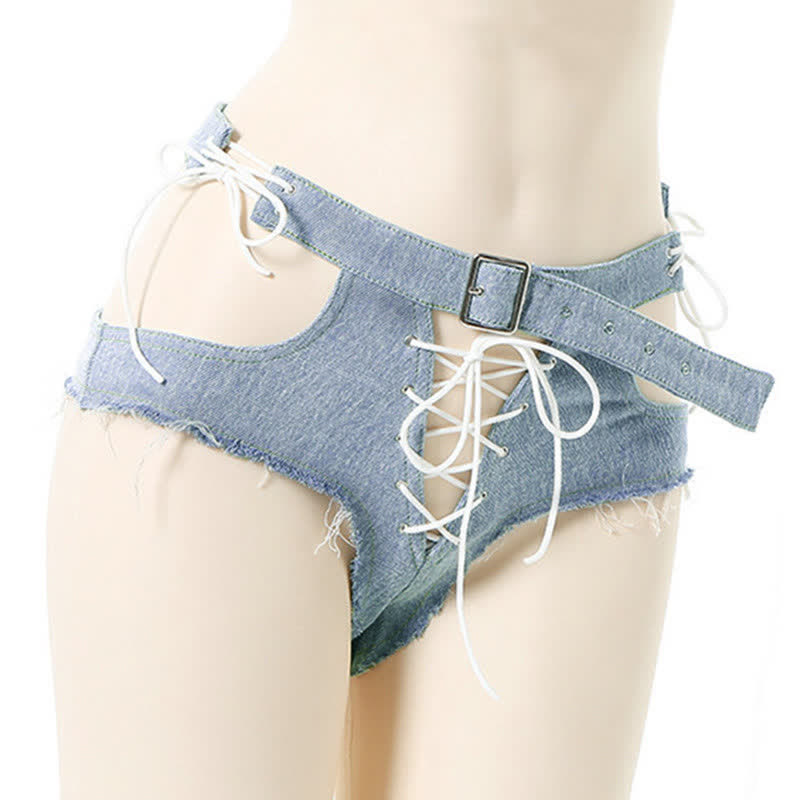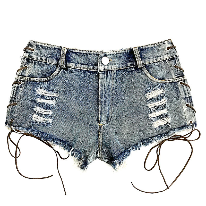 Sexy Low Waist Lace Up Ripped Denim Shorts Lingerie