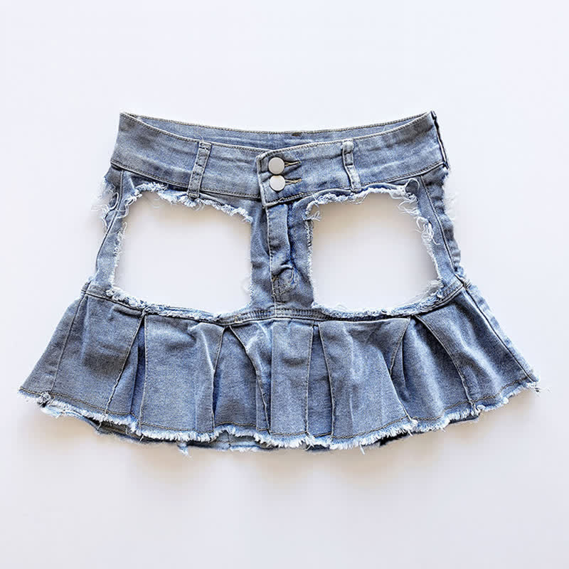 Sexy Hollow Out Pleated Denim Skirt Lingerie