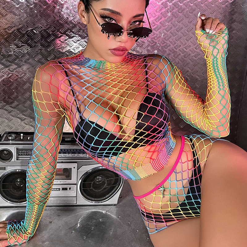 Rainbow Hollow Out Backless Jumpsuit Lingerie