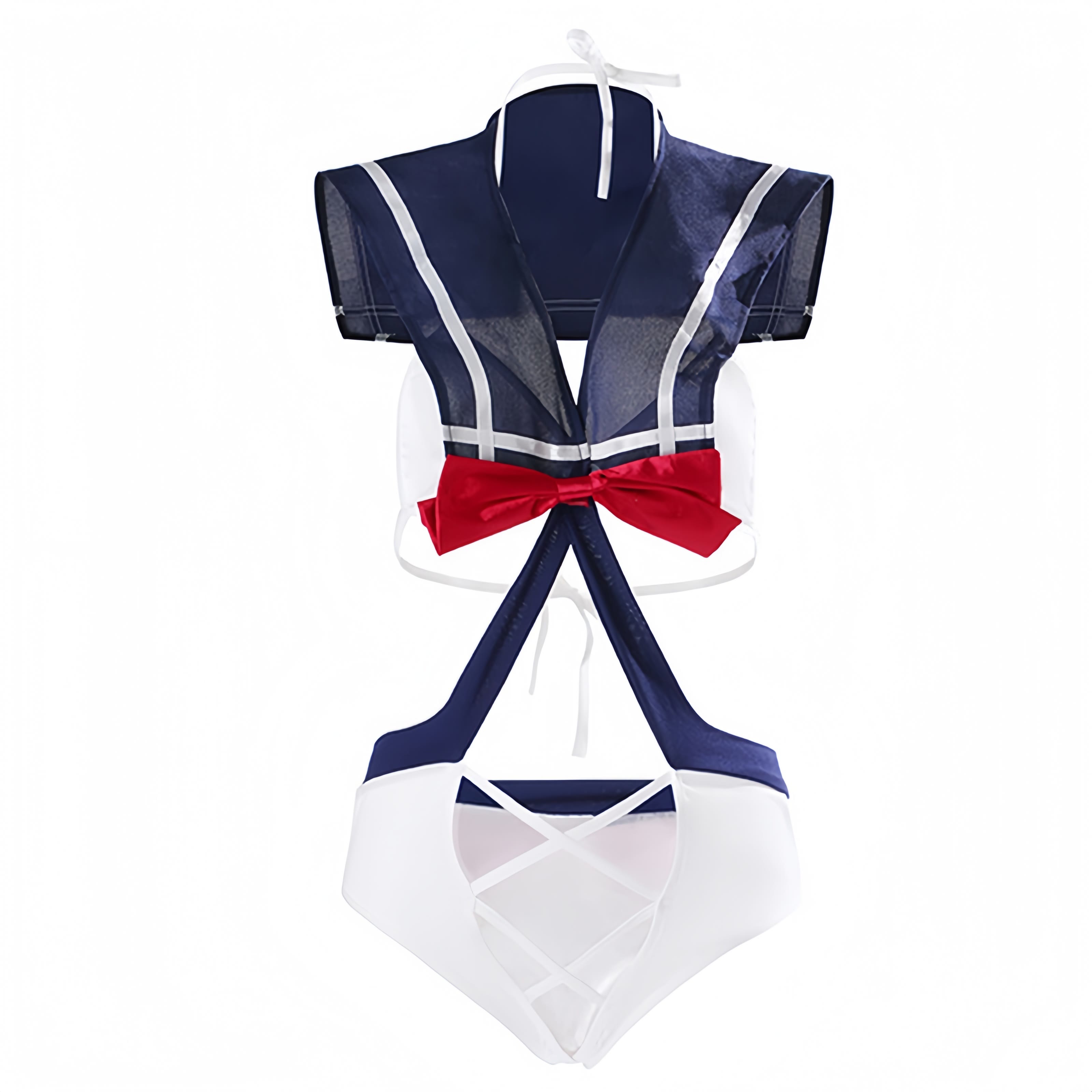 Sailor Collar Hollow Out Bow Jumpsuit Lingerie