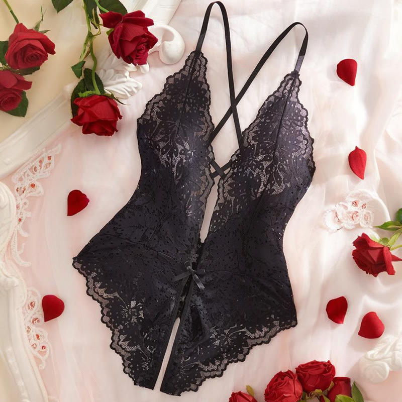 Sexy Lace Hollow Out Lace-up Jumpsuit Lingerie