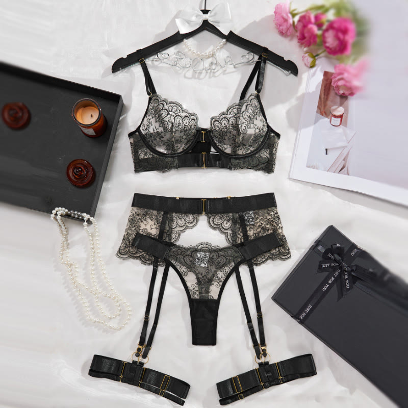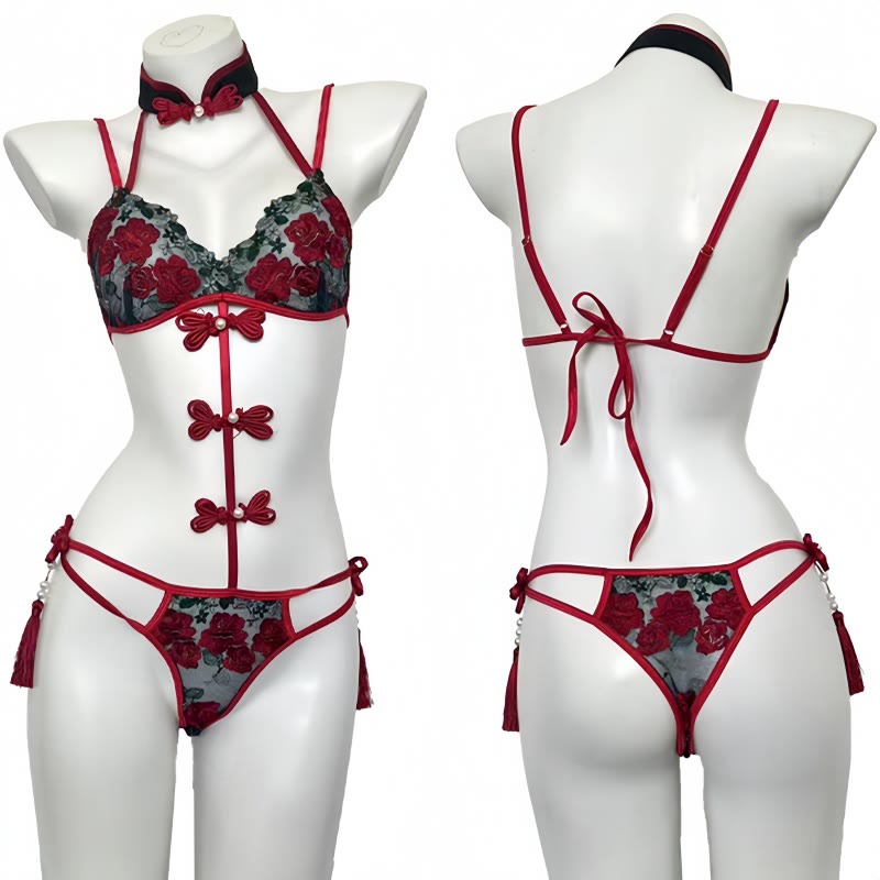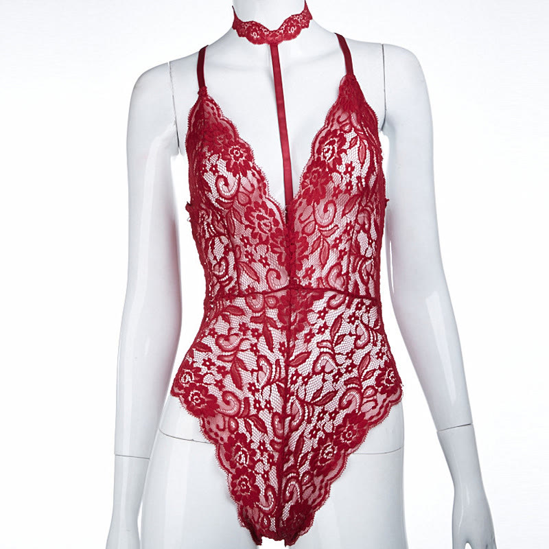 Cheongsam Lace Hollow Out Jumpsuit Lingerie Set