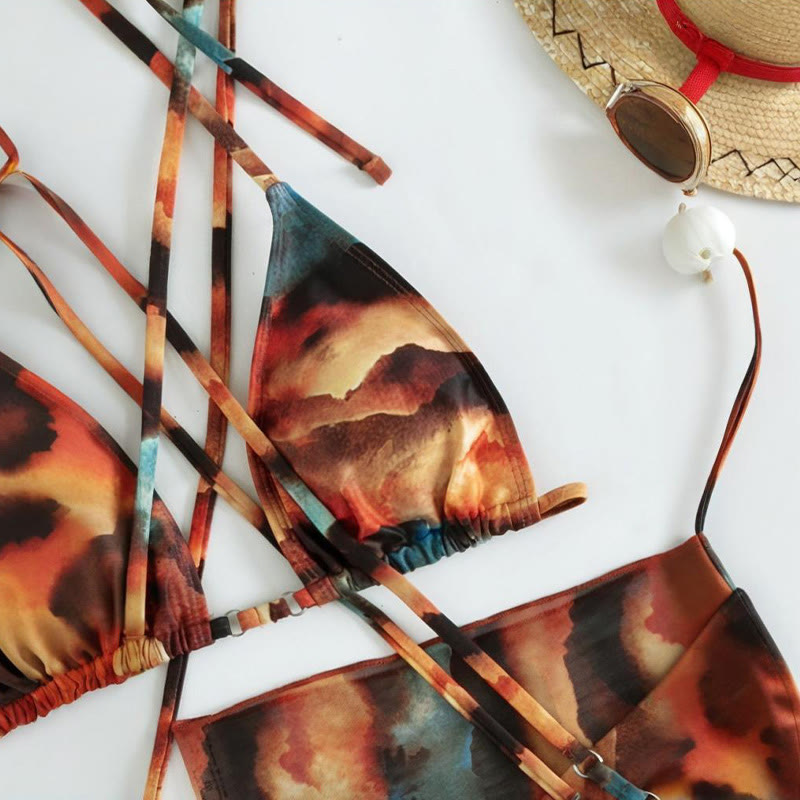 Vintage Print Bikini Swimwear Set