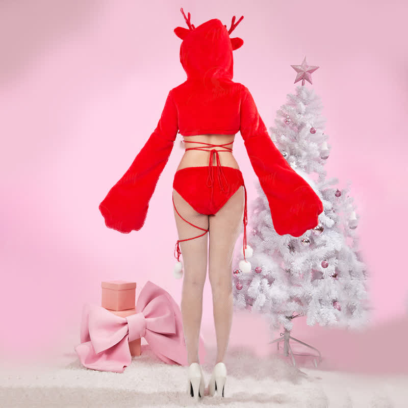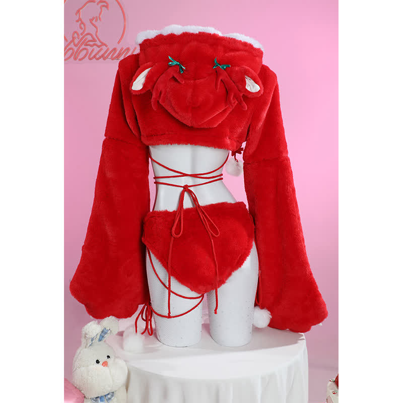 Cosplay Cartoon Deer Paw Hooded Plush Lingerie Set