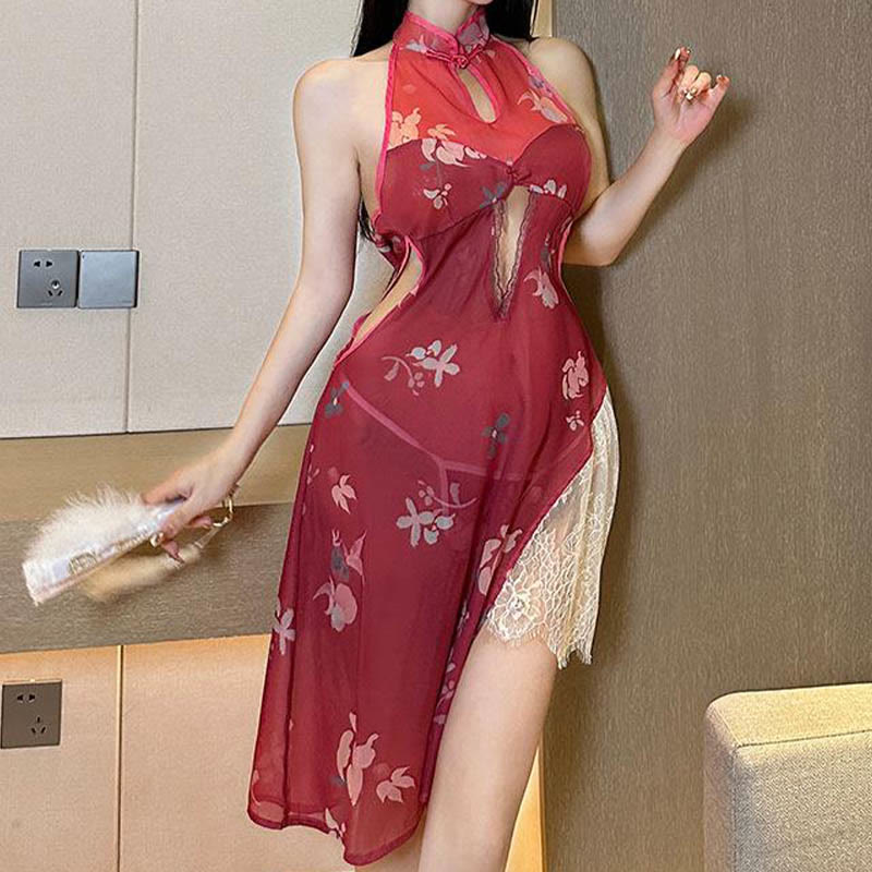 Vintage Cheongsam Hollow Out Split Lingerie Dress