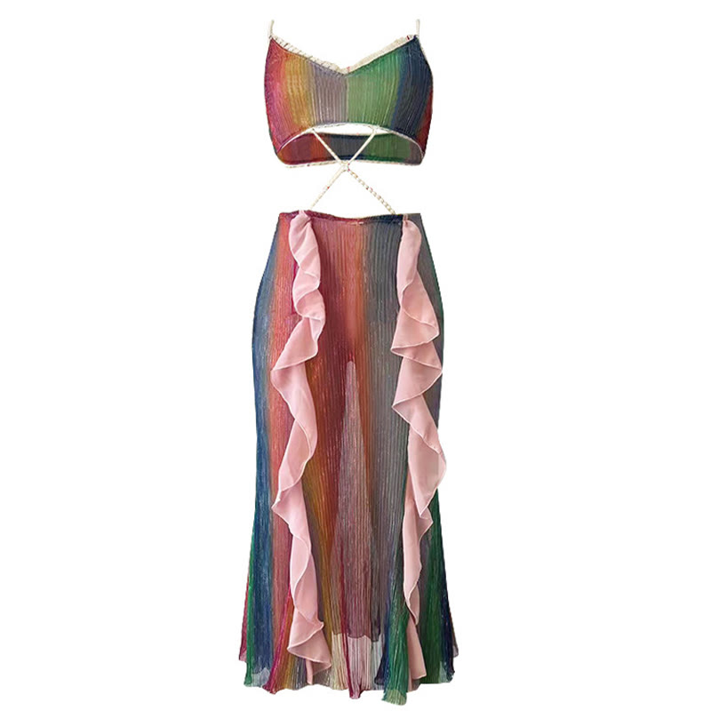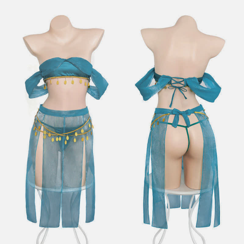 Han Costume Sequin Fringed Lace Up Split Lingerie Set