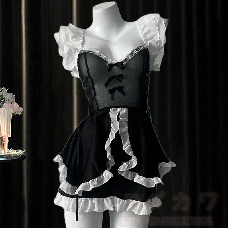 Cosplay OL Deep V-neck Ruffled Lingerie Dress