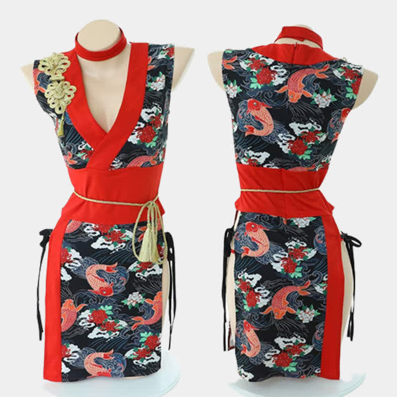Fish Print Japanese Kimono Lingerie Dress