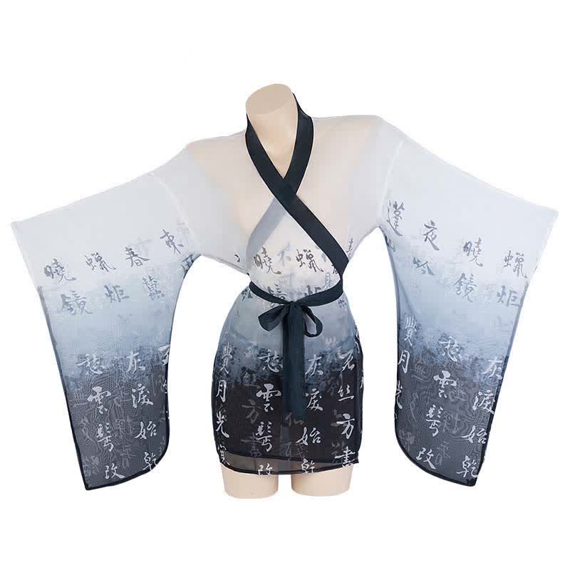 Ink Painting Print See Through Kimono Dress Lingerie