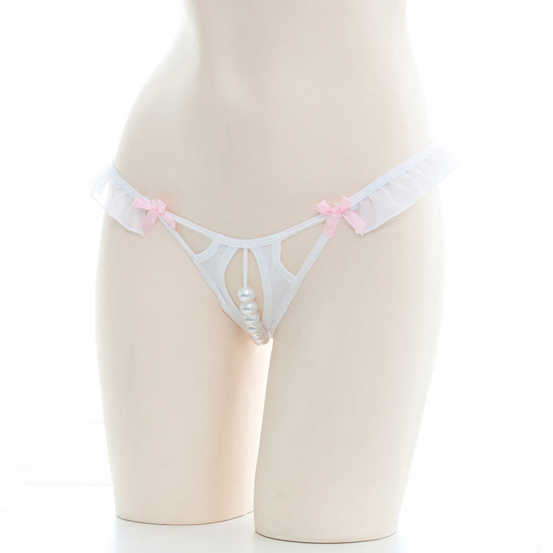 Pearl Decor Rabbit Tail Fuzzy Ball G-string G-String