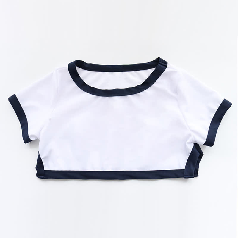 School Style Split Mini Crop Top Panty Lingerie Set