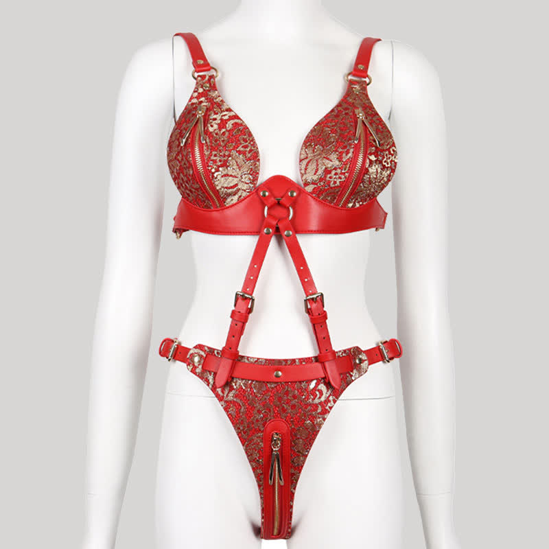 Sexy Lace Zipper Lingerie Set