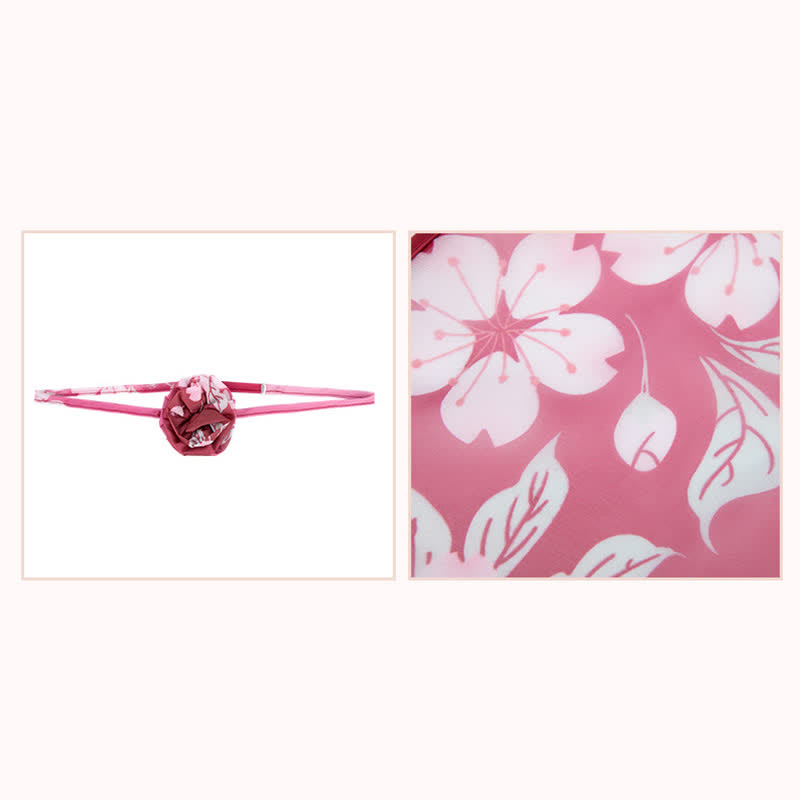 Vintage Han Costume Blossom Print Lace Up Lingerie Set