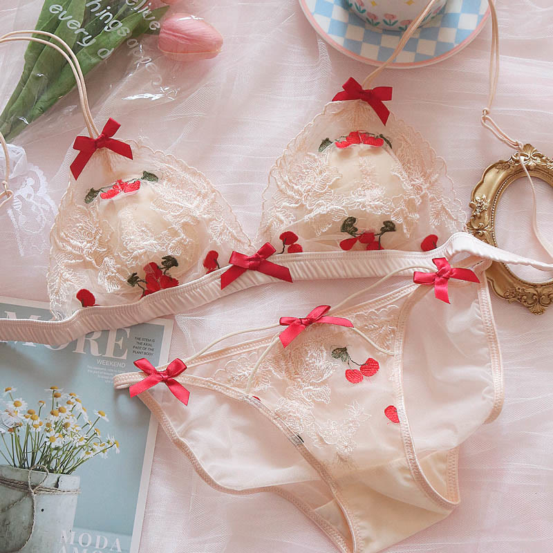 Han Costume Vintage Embroidery Lace Up Tassel Lingerie Set