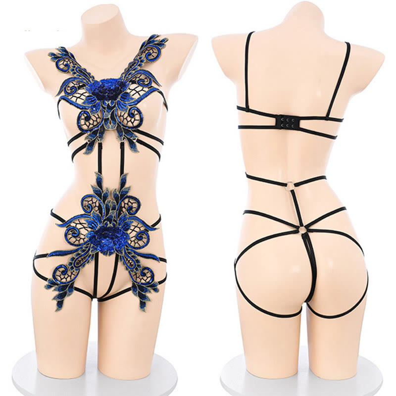 Hollow Out Lace-up Backless Jumpsuit Lingerie