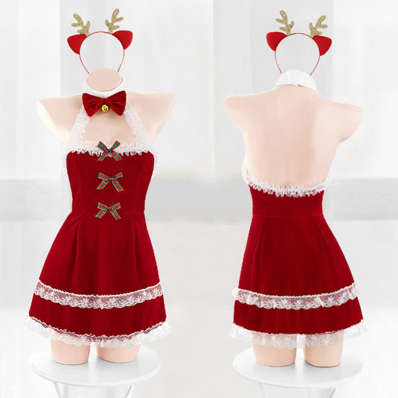 Christmas Halter Bow Knot Lace Lingerie Dress