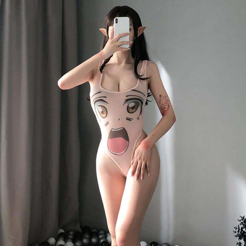 Flower Cartoon Print Tight One-Piece Lingerie