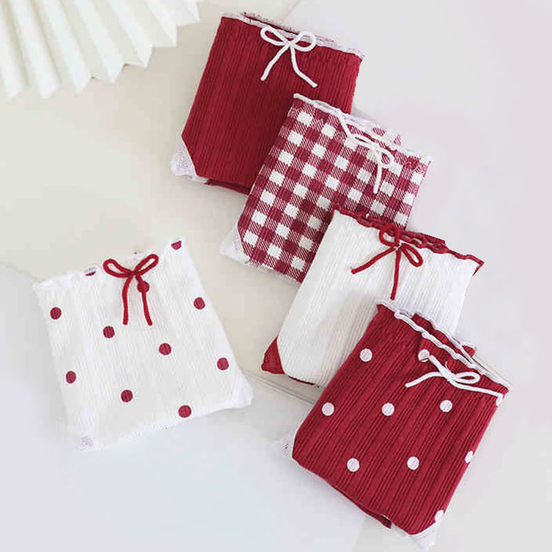 5 Pack Plaid Dot Bow Print Panty Set