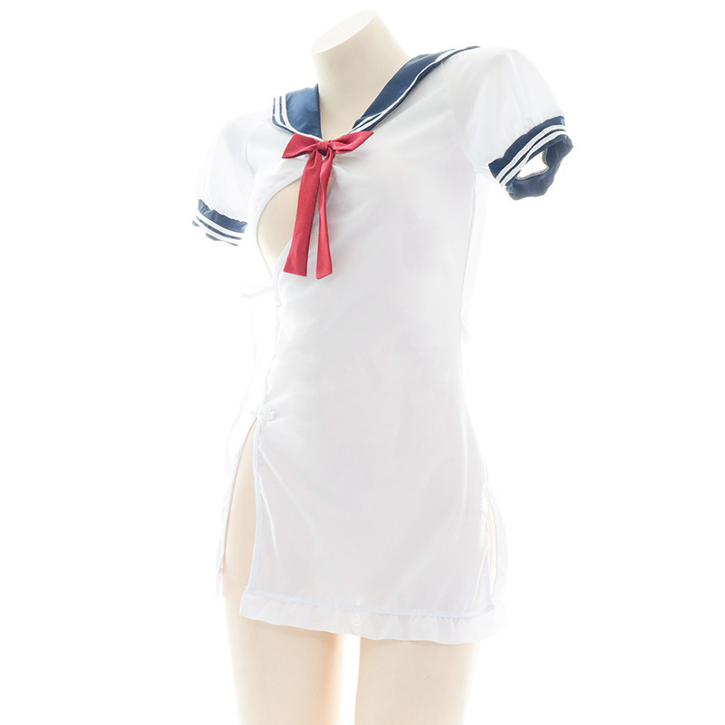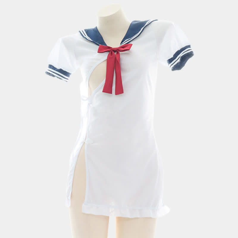 Bow Knot Sailor Collar Lace Up Split Lingerie Dress