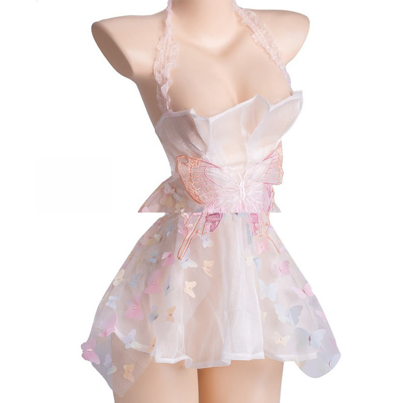 Butterfly See-through Backless Lingerie Dress