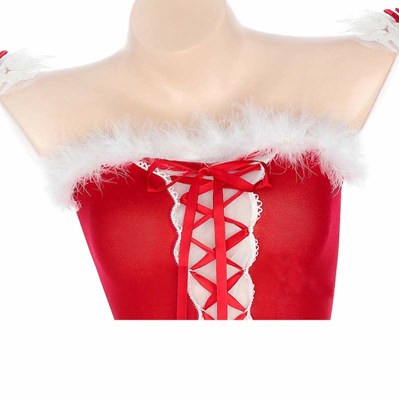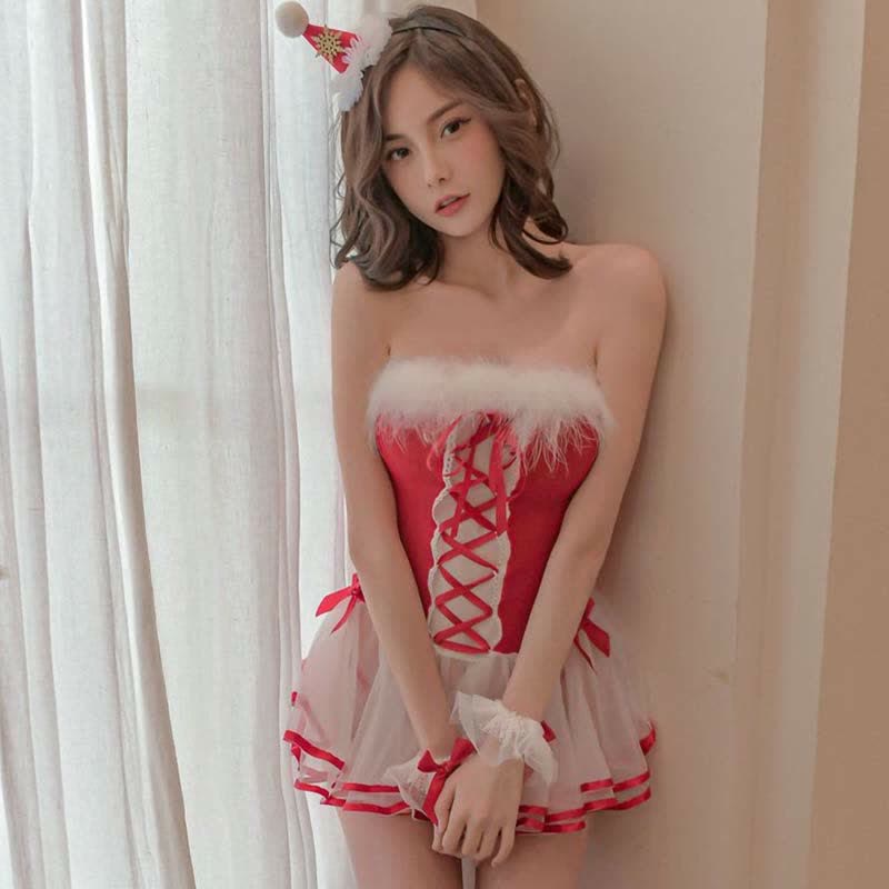 Package Includes: Dress x 1, Headwear x 1, Stockings x 1, Wristband x 2, G-string x 1
