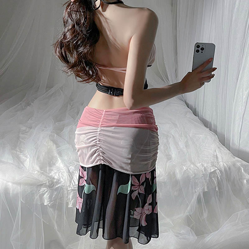 Sexy Bikini Backless Floral Print Lingerie Set