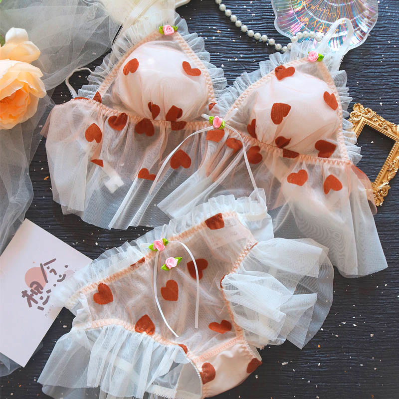 Sexy Lace Heart Print Mesh Lingerie Set