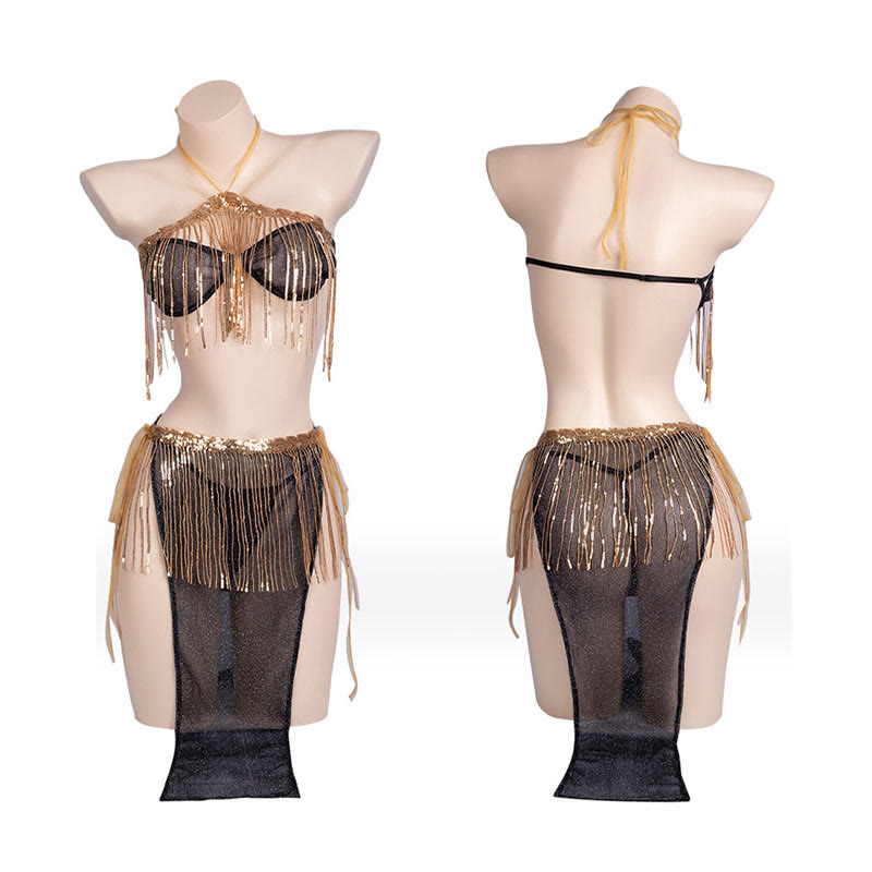 Package Includes: Bra x 1, Skirt x 1, Shawl x 1, G-String x 1