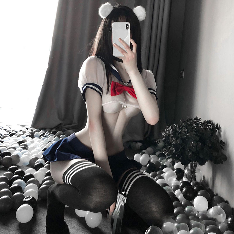 Uniform Sailor Collar Bow Stripe Lingerie Skirt Set