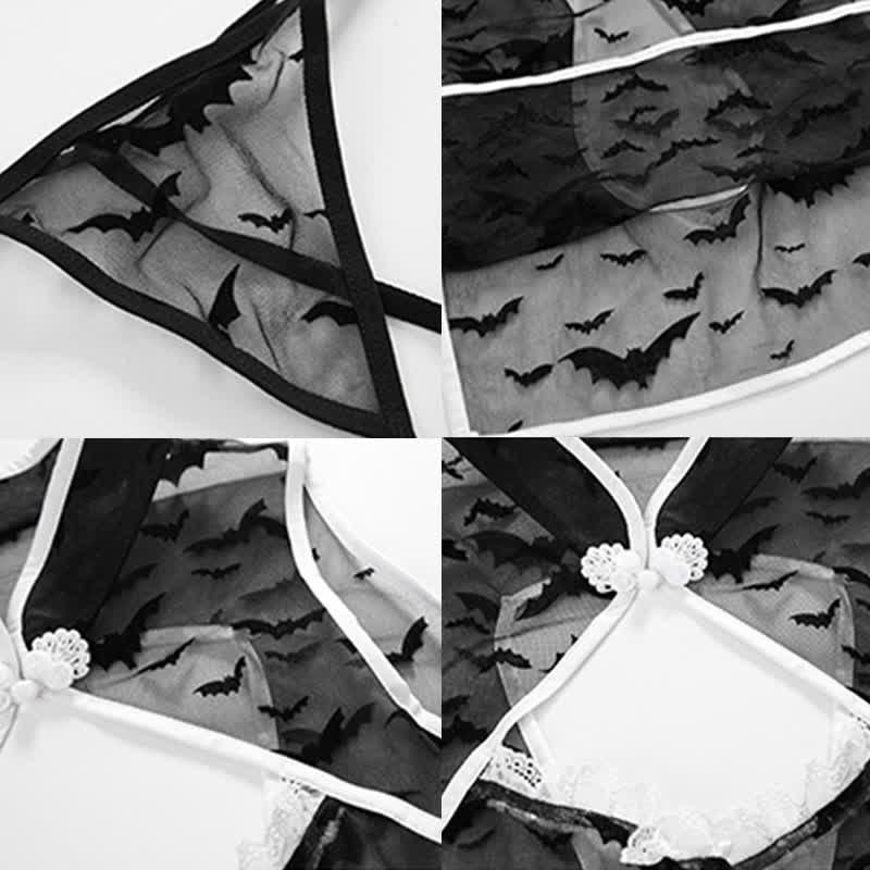Bat Print Lace Up See Through Vintage Cheongsam Lingerie Dress