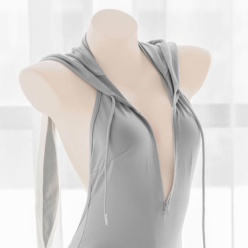 Bunny Ears Zipper Hooded Lingerie Set