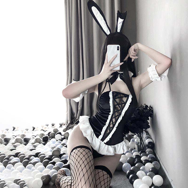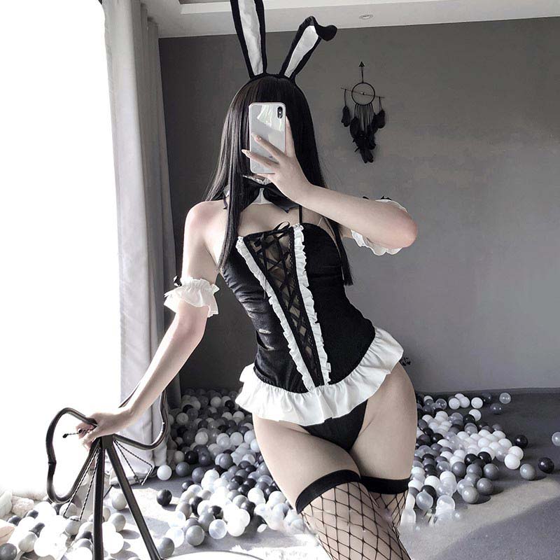 Package Includes: Lingerie x 1, WristBand x 2, Headband x 1, Choker x 1, Stockings x 1