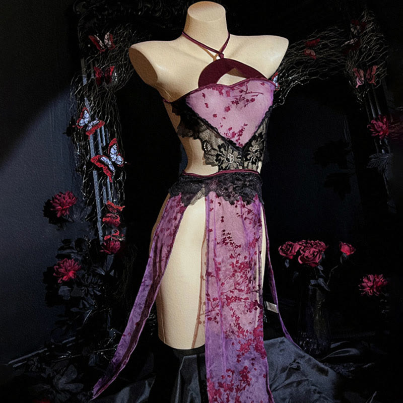 Cheongsam Hollow Out See-through Split Lingerie Dress