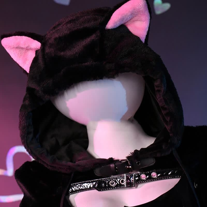 Cosplay Kitty Paw Hooded PU Lingerie Set
