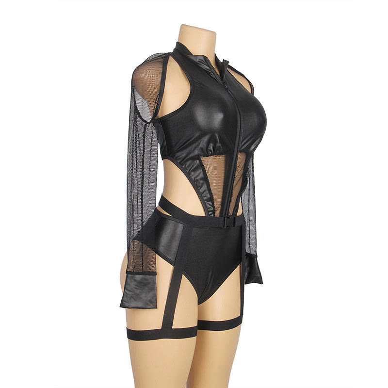 Cosplay Kitty See-through Zipper Jumpsuit Lingerie Set