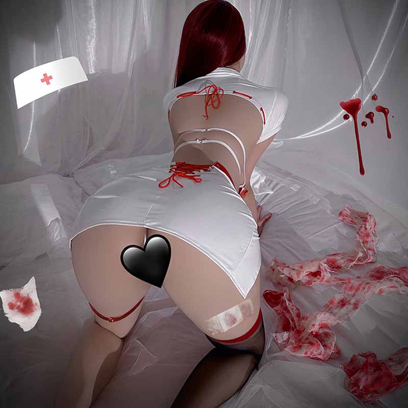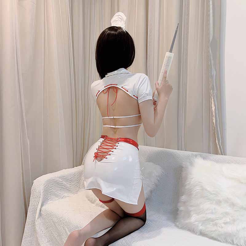 Cosplay Nurse Lace Up Hollow Out PU Lingerie Set