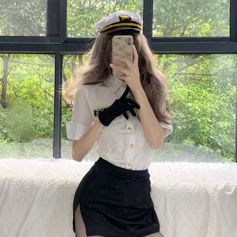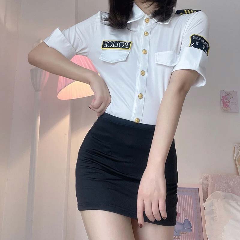Cosplay Policewoman White Stockings Uniform Lingerie Set