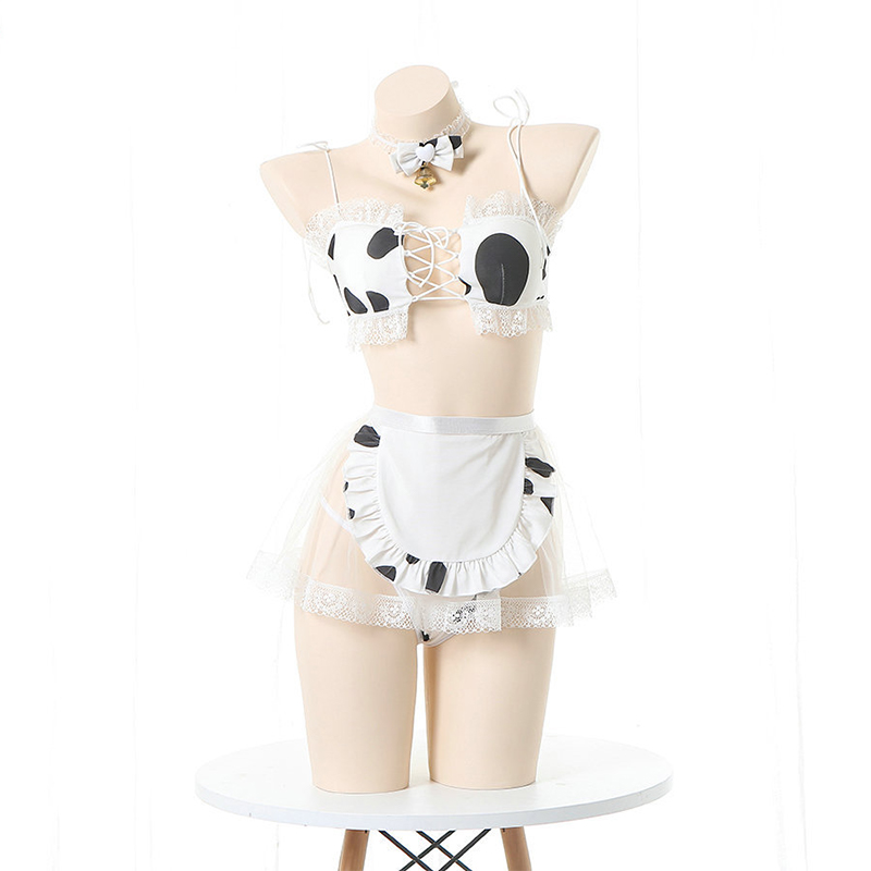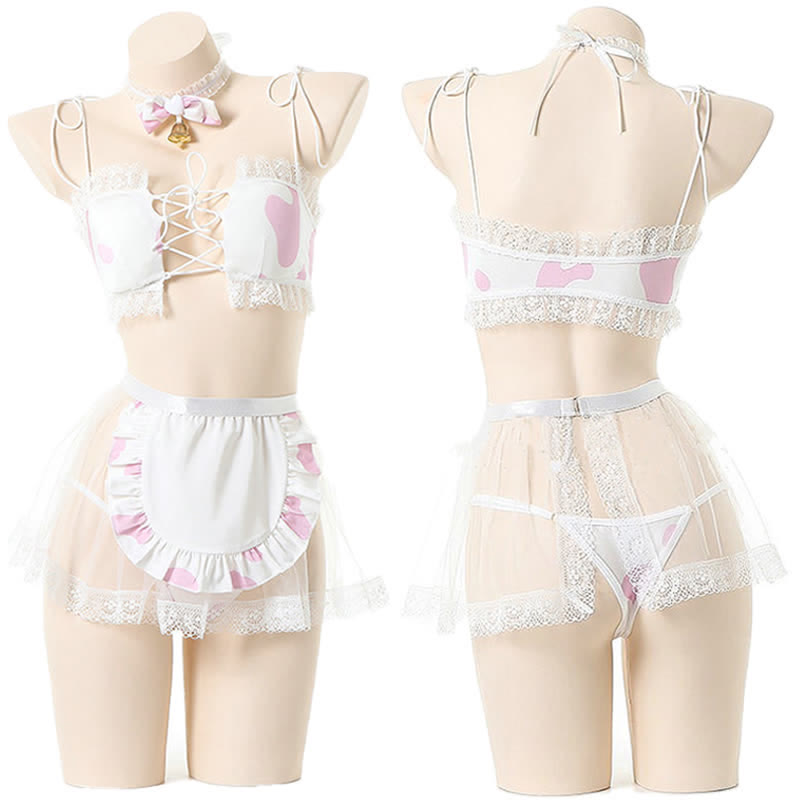 Cow Pattern Print Lace Bikini Lingerie Set