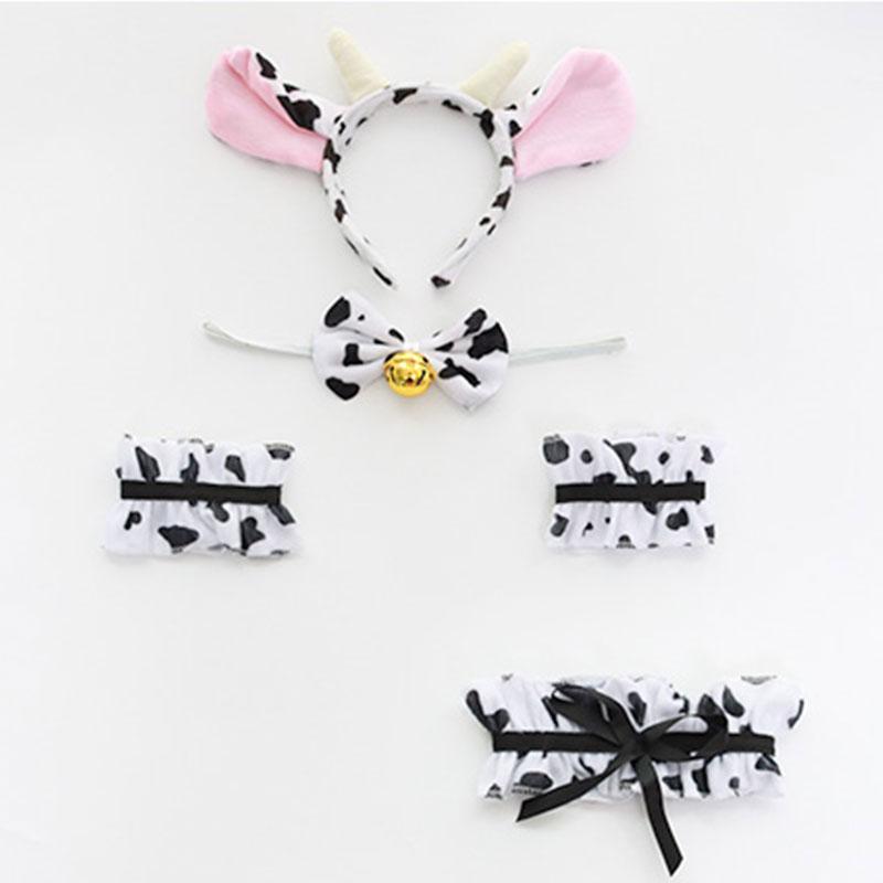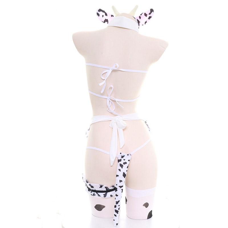 Cute Cow Bow Ruffle Headband Lingerie Set